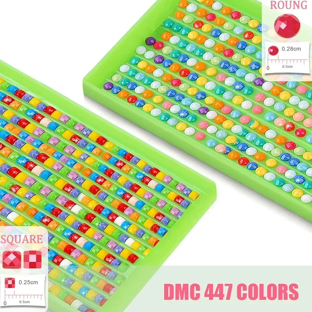 Square drills – They fit tightly together with no gaps, giving your painting a sharp, detailed, mosaic-like finish